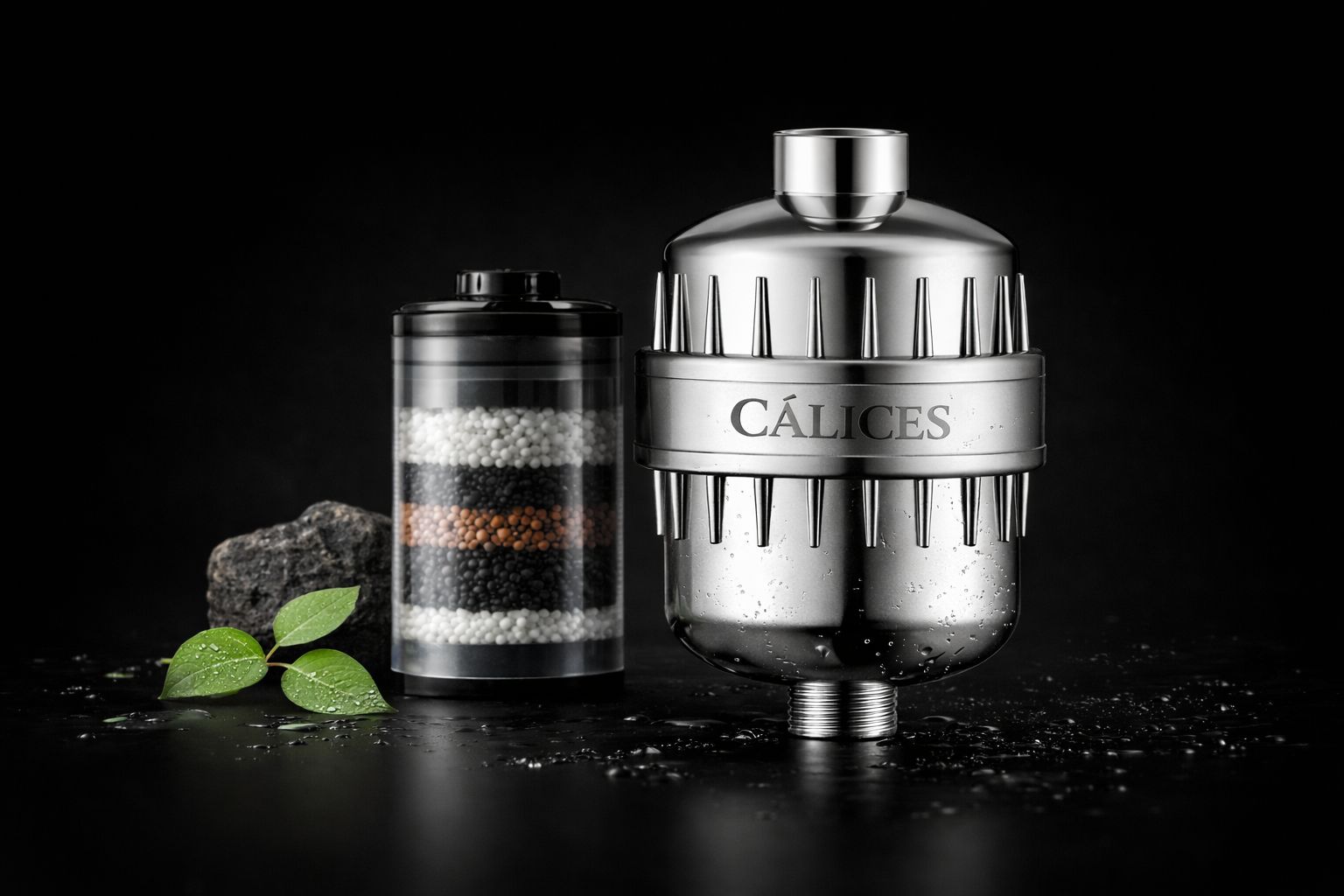 Cálices goes further. It uses three premium technologies that work together to transform hard water — improving skin and hair from the first weeks.