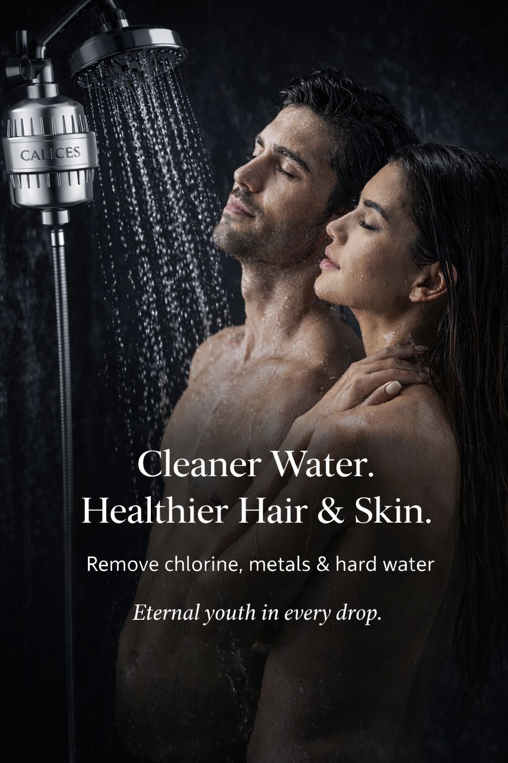 ✔ Vitamin C + E Complex — neutralizes chlorine while nourishing the scalp for shinier hair and smoother, younger-looking skin.
